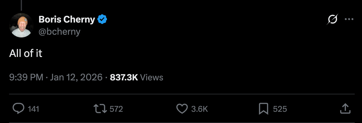 Boris Cherny (creator of Claude Code): “The last month was my first as an engineer when I didn’t open an IDE at all.”